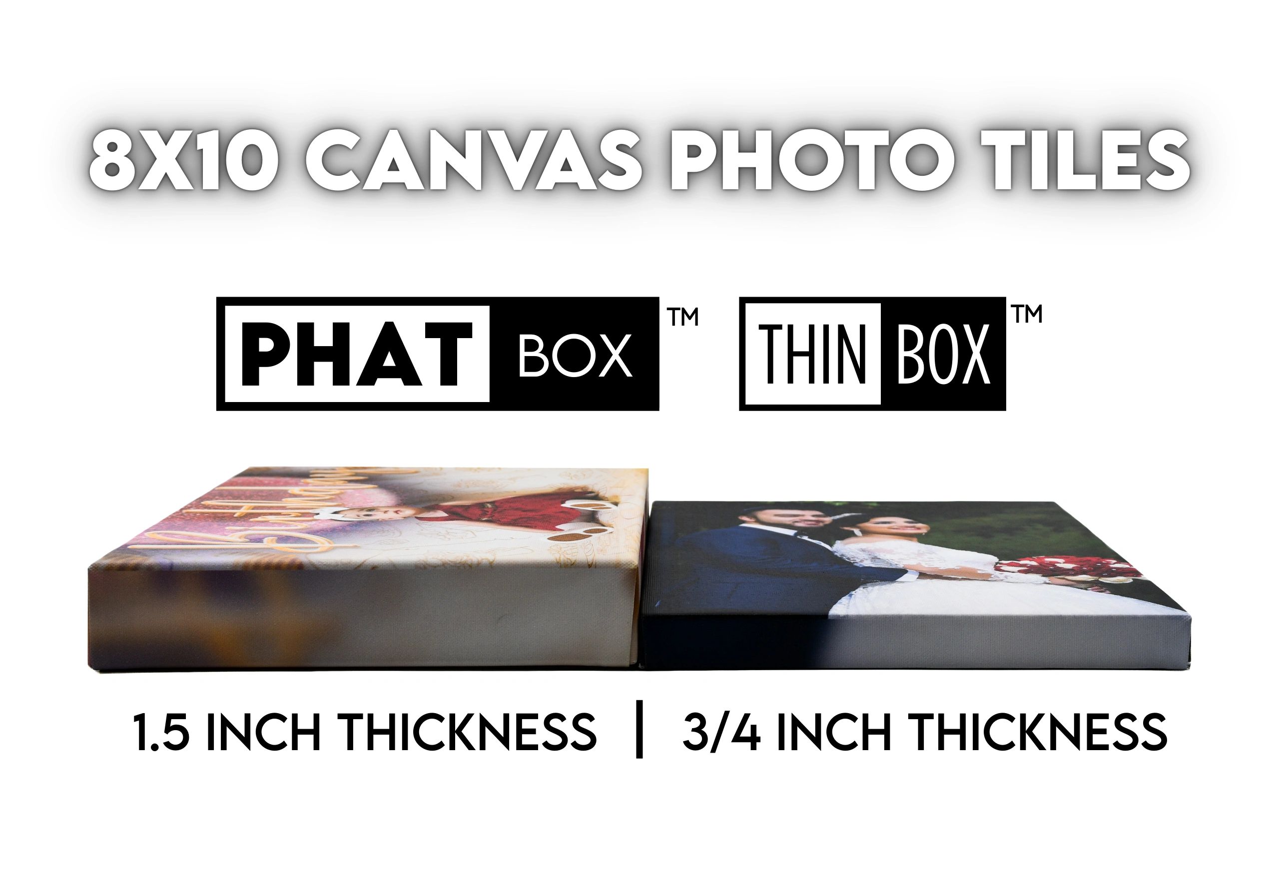Our Mini's come in two forms: PHATbox Mini (1.5" thick), or the ThinBOX Mini (.75" thick), both sized at 8"x10" made with Solid Pine Wood. Create eternal memories now and click on the link for specials for the Mini's Photo Tiles!